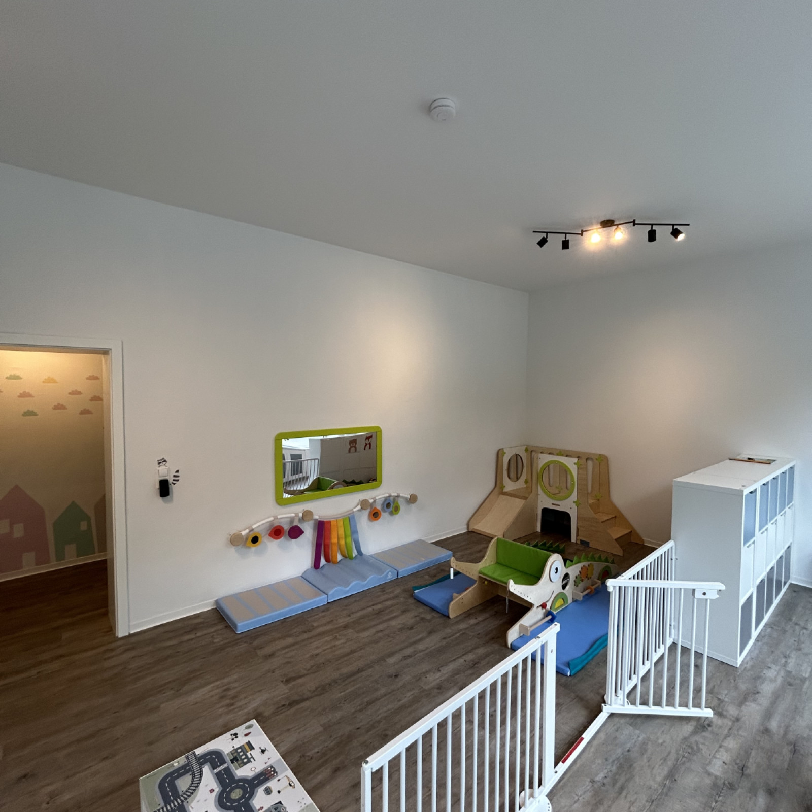 Die Räume meiner Kindertagespflege bieten den Kindern viel Platz zum Toben, Spielen und Schlafen. Es stehen 3 liebevoll eingerichtete Räume mit einer Fläche von insgesamt 75 Quadratmetern für vielfältige Entdeckungen bereit. Die Kindertagespflege findet in angemieteten Räumen statt. Die Einrichtung ist modern und mit der kindgerechten Ausstattung fühlen wir uns hier jeden Tag wohl. Sicherheit ist beim Spielen wichtig und so sind die Räume mit verschiedenen Features ausgestattet, die unbekümmertes Spielen ermöglichen.
